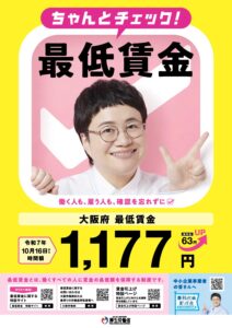 令和7年10月16日から大阪府の最低賃金は「1,177円」